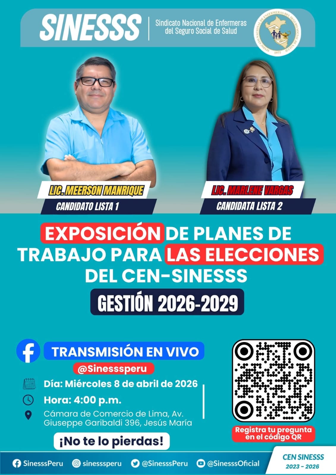“Estoy muy agradecida con el SINESSS por el aprendizaje sindical que viene departiendo a todos los colegas, es un ogullo pertenecer a esta organización, siempre estaré muy agradecida con todas los colegas del SINESSS que me brindaron su apoyo en el momento que más necesité”